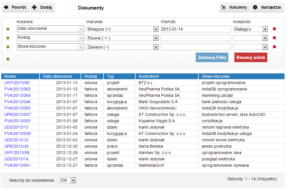 W wersji standardowej elektroniczne archiwum dokumentów InstaBIURA oferuje następujące funkcje: