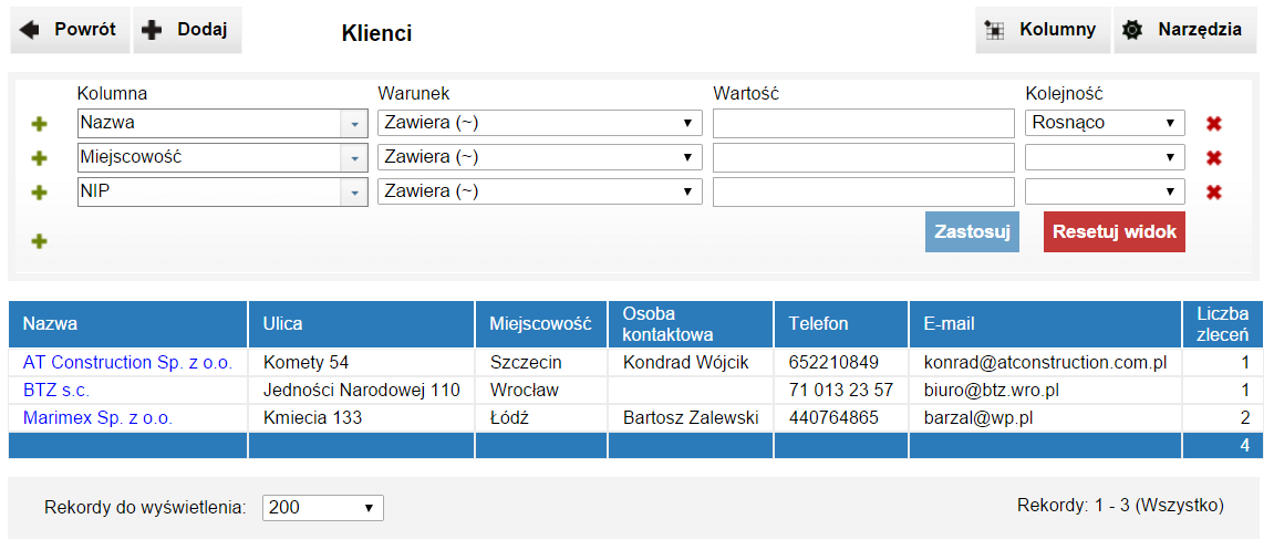 - lista osób kontaktowych klienta