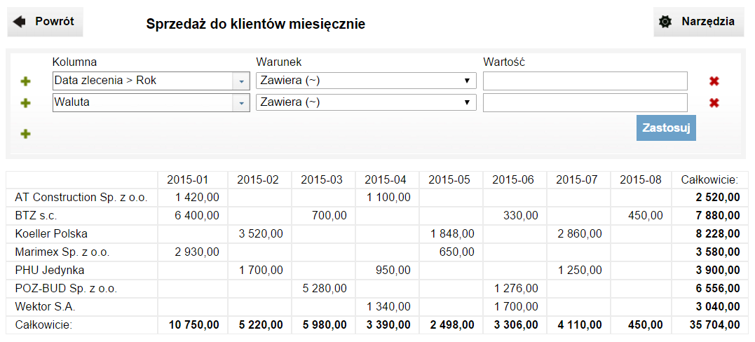 - zestawienie sprzedaży wg klientów